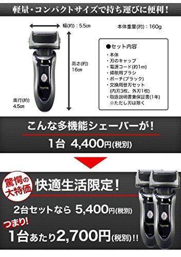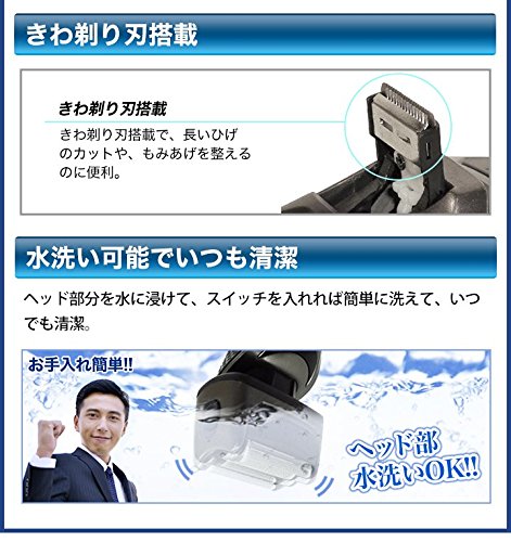 -. Feature : 電源方法:充電式、充電時間:約8時間、連続使用時間:フル充電後約30分、定格電圧:AC100V 50/60Hz、消費電力:3W、使用電池:ニッカド電池(Ni-Cd)、カラー本体:シルバー、ポーチ:ブラック