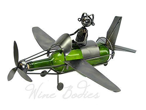 WINE BODIES ZB845 Small Airplane Metal Wine Bottle Holder, Charcoal