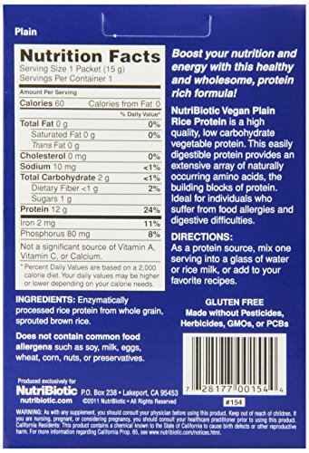 -. Title : Nutribiotic Rice Protein Packets, Plain, 12 count