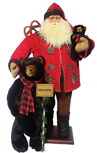 Santa's Workshop 8016 Pine Cone Santa with Bears Figurine, 36" ,,