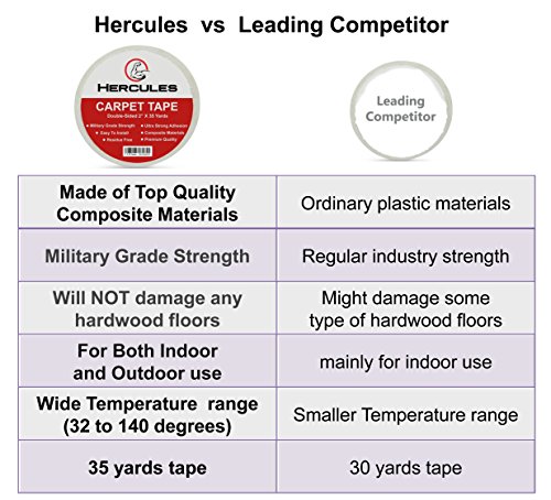 LIFETIME WARRENTY: We stand behind our top quality Hercules carpet tape. Your purchase is backed by our "no questions asked" 100% money back guarantee.