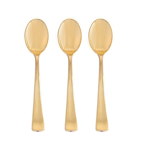 ✅ HIGH QUALITY: Durable and won't scratch and break easily. High Gloss, Polished finish looks elegant. Made of disposable and reusable plastic that is sturdy and durable. with a feel like real Gold Plastic cutlery in your hand.