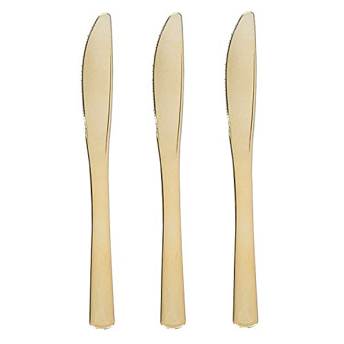 Upscale Collection, Heavyweight Polished Gold Plastic Cutlery (160 Pc), 80 Forks, 40 Knives, 40 Spoons, Party of 40 Combo Pack