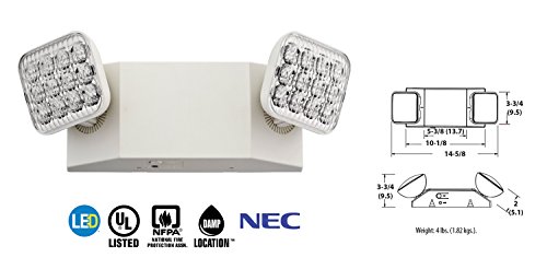 LED 2-HEAD Emergency Light fixture provides 90 minutes of back up light with rechargeable Ni-Cad battery