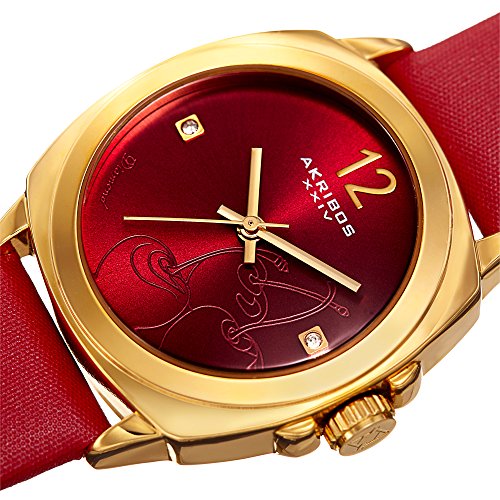 -. Title : Akribos XXIV Women's Quartz Stainless Steel and Leather Casual Watch, Color:Red (Model: AK902RD)
