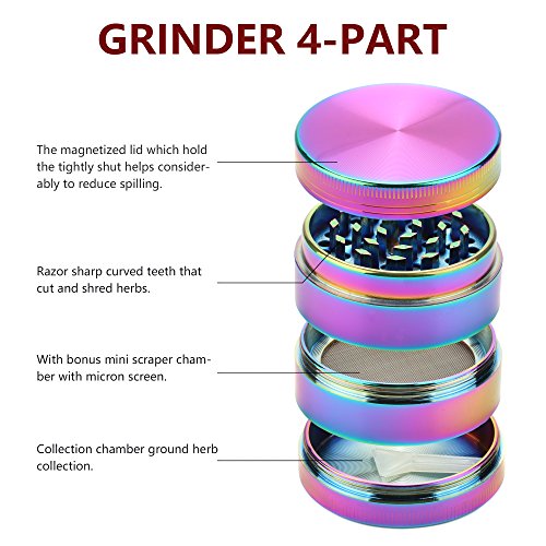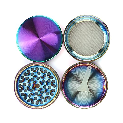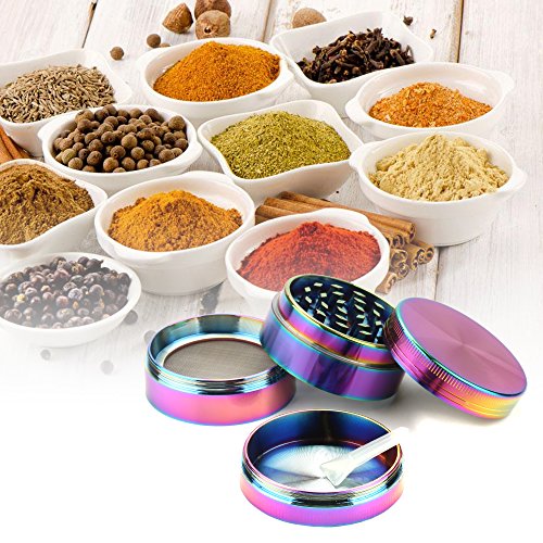 Grinder, Fancystyle Rainbow 4 Pieces Iceblue Spice Grinder Herb Grinder Spice Mill with a Pollen Scraper(40X52)
