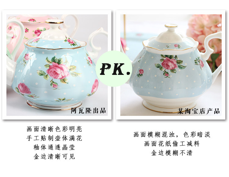 英式田园下午茶具骨瓷茶壶英伦荷口小壶描金家用陶瓷咖啡壶