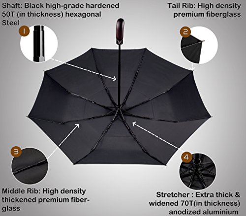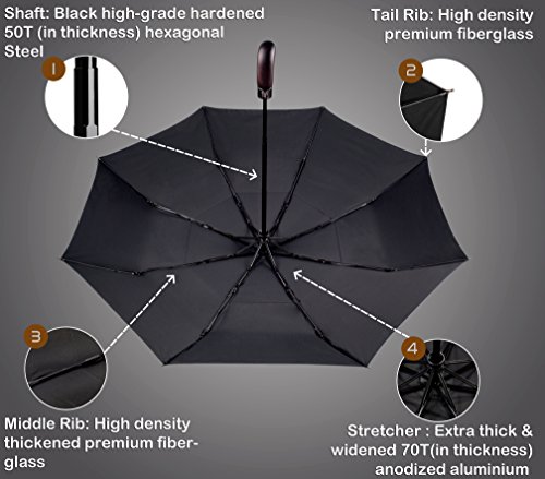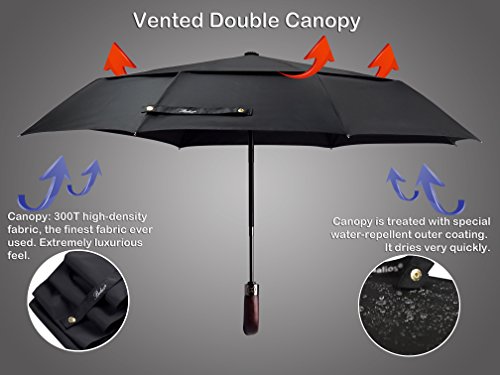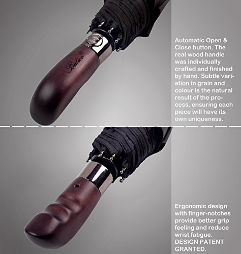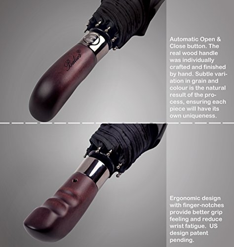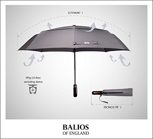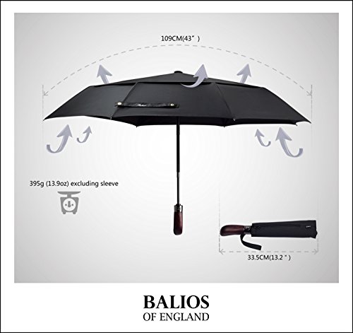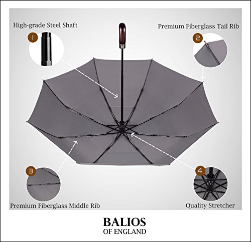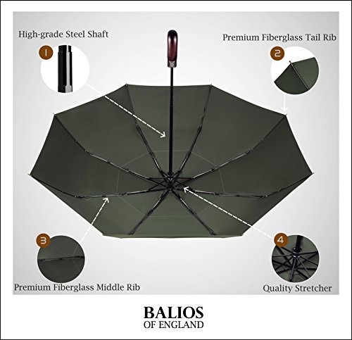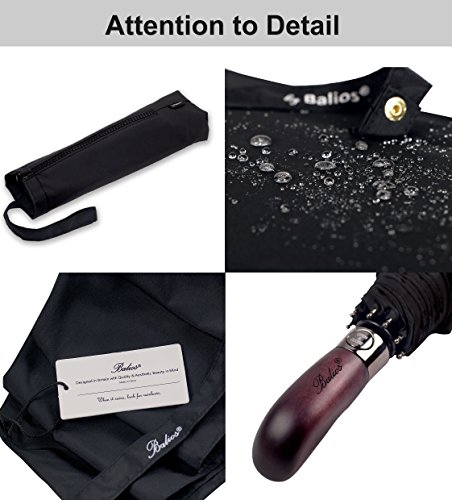 What makes Balios umbrella a great umbrella? There is really no magic about it - it is merely patient attention to detail. Pick up a Balios umbrella and you will immediately sense that it is a different kind of umbrella. With its sturdy frame construction and exquisite design, our Balios umbrella is the perfect combination of durability and metropolitan style. Main Features: ?Revolutionary construction designed to battle the elements: high grade black hardened steel shaft for a heavy-duty foundation unique thickened premium fiberglass wind-resistant frame system, offering great durability.