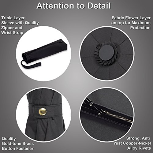 ?Superior ultra-soft ultra-lightweight 300T high-density water repellent fabric keeps you dry and protected from the rain. It is the finest fabric ever used in any umbrella and dries very quickly.