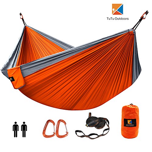 TuTu Outdoors XL Double Camping Hammock, Ultralight Soft Silky Nylon Portable Hammock Hanging Bed With 10ft Tree Straps with Loops Carabiners for Backpacking Travel, Patio, Beach, Yard 130" L x 78" W