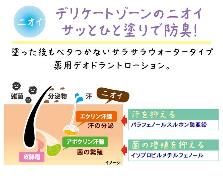 | 使用方法 | 適量をにおいが気になるところ、汗のでやすいところに塗布してください。 |