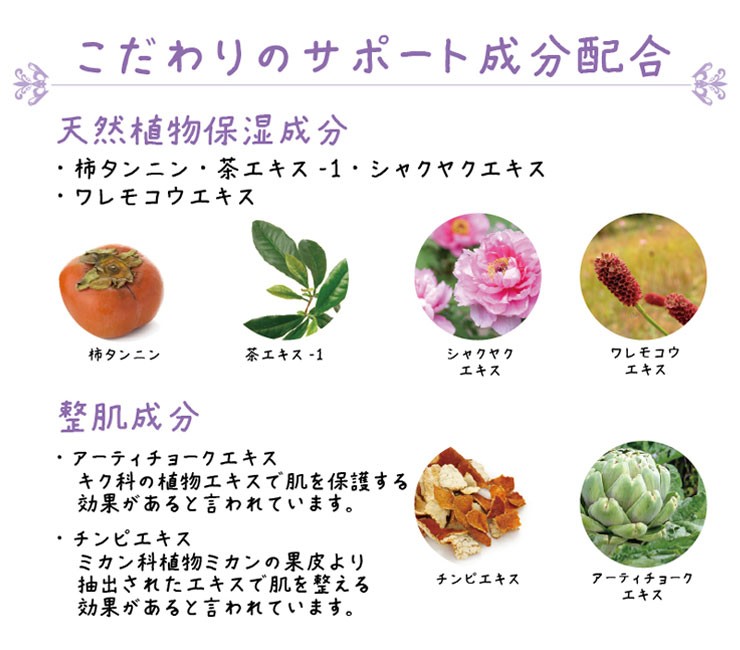| 成分 | フェノールスルホン酸亜鉛、シメン-5-オール、柿タンニン、チンピエキス、シャクヤクエキス、ワレモコウエキス、茶エキス-1、アーティチョークエキス、トレハロース、メントール、塩化Na、炭酸水素Na、炭酸Na、BG、フェノキシエタノール、エタノール、香料 |