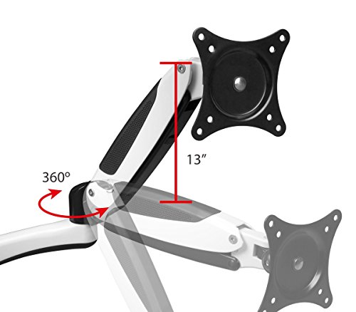 -. Binding : Office Product -. Brand : SIIG -. Color : White -. EAN : 0662774021591 -. Feature : Premium quality adjustable gas sP.R.Ing assisted full-motion desktop mount / Rotatable VESA plate supports portrait or landscape monitor orientation / Foldable arm frees up additional space and extends up to 22" / Compatible with desk surfaces from 0.8" to 3" in thickness / Grommet mount fits through surface hole from 3/8" to 2.25" wide and up to 3" thick -. Label : SIIG -. Manufacturer : SIIG -. Model : CE-MT1H12-S1 -. MPN : CE-MT1H12-S1 -. PackageQuantity : 1 -. PartNumber : CE-MT1H12-S1 -. ProductGroup : Office Product -. ProductTypeName : OFFICE_PRODUCTS -. Publisher : SIIG -. Studio : SIIG -. Title : SIIG Tilt and Swivel Monitor Desk Mounting Kit - White (CE-MT1H12-S1) -. UPC : 662774021591 -. Warranty : 3 years warranty