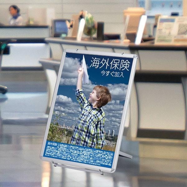 | B1パネルを全高1m以内に大迫力掲示!!ロータイプのパネルスタンド☆店内等で使用する際パネルが安定するので倒れにくい!! |