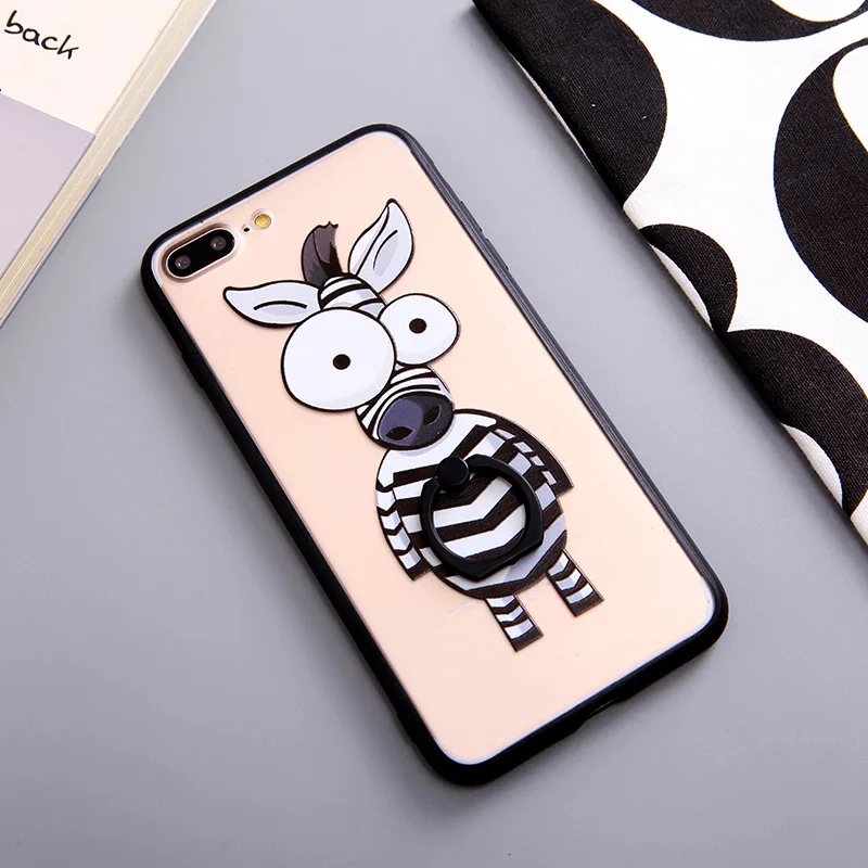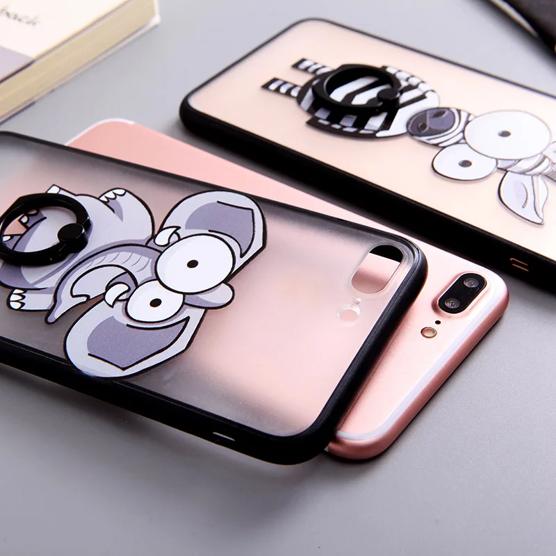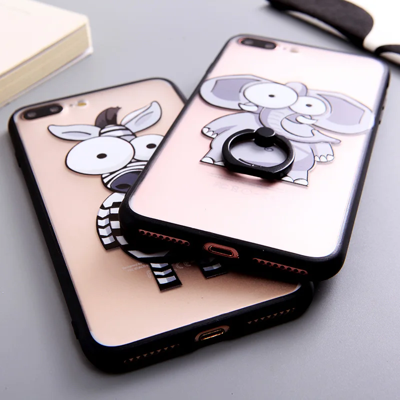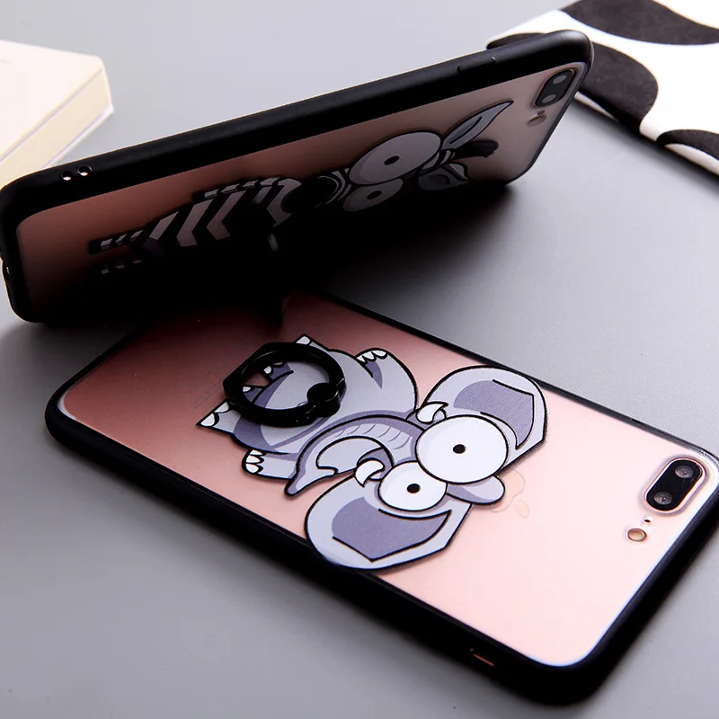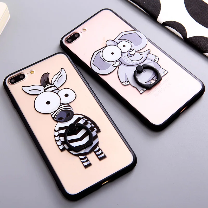 Type:Ring Grip Cartoon Elephant Zebra Pattern Case