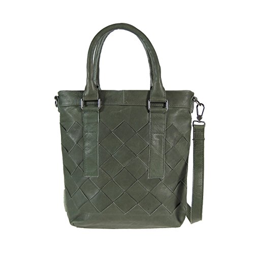 -. Title : Cowboysbag Amsterdam Thorner Leder City Shopper Flecht Muster Dunkelgrün