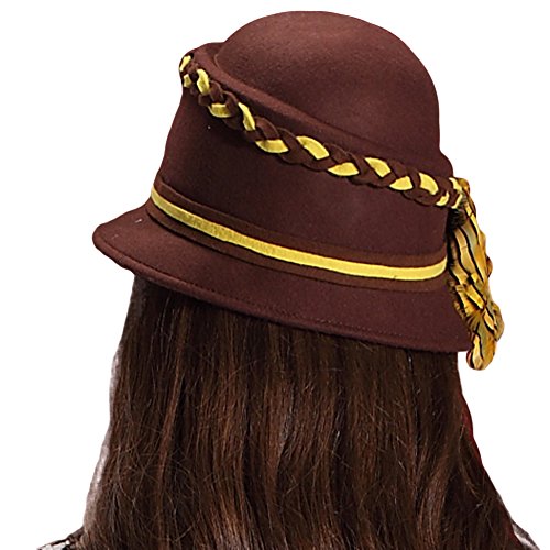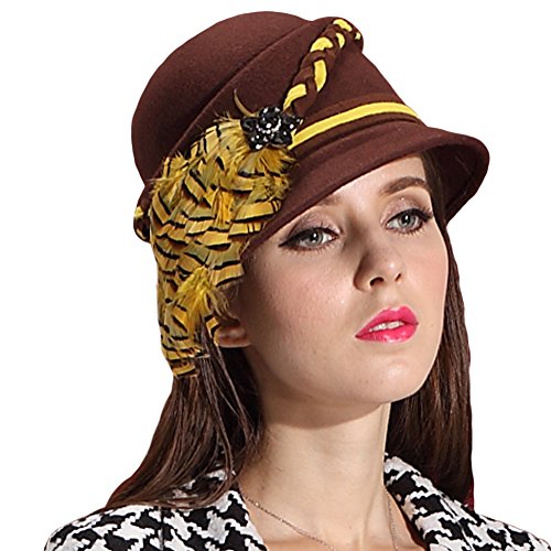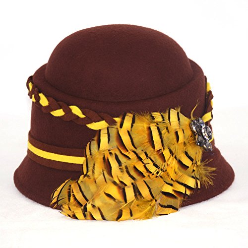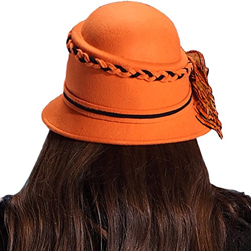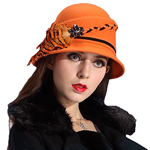 -. Binding : Apparel -. Brand : June's Young -. ClothingSize : One Size -. Department : womens -. Feature : wome hat autumn&winter hat wool bucket peacock feathers / Made by wool / Hat circumference: 22.64inches (drawstring adjuster inside) / Color:Orange .brown / Hat care: dry clean only -. Model : ZM-0074 -. ProductGroup : Apparel -. ProductTypeName : HAT -. Size : One Size -. Title : June's Young Women Winter Hats 100% Wool Peacock Feather Short Brim Party