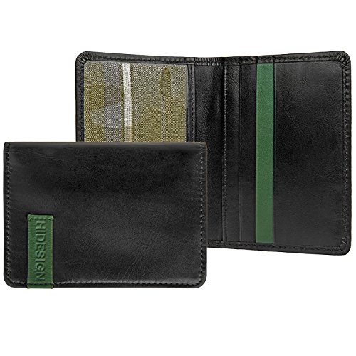 -. Feature : Hidesign's sleek full grain Ranch leather / Hidesign's signature 100% cotton green striped lining / Interior Details: 3 credit card slots, 1 ID holder and 1 slip pockets / Lage: Business Accessories / Business Accessories