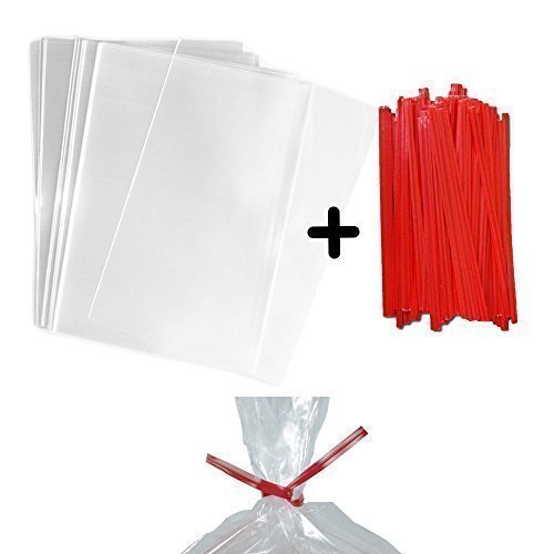 INCLUDES 100 4x6” bags AND 100 four inch RED TWIST TIES! Perfect bags for your homemade Cakepops, lollipops, nuts, cookies, treats, snacks, prizes, party favors, chocolate, cake pops, berries, beads, dried fruit, jellybeans, or pretty much anything! Can be sealed with a HEAT SEALER or the INCLUDED red twist ties. These bags are 100% RECYCLABLE. *NEW* 3 sizes available! 3x4" and 5.75x7.75"