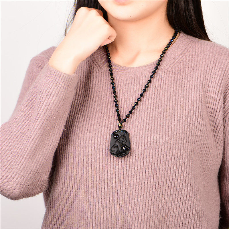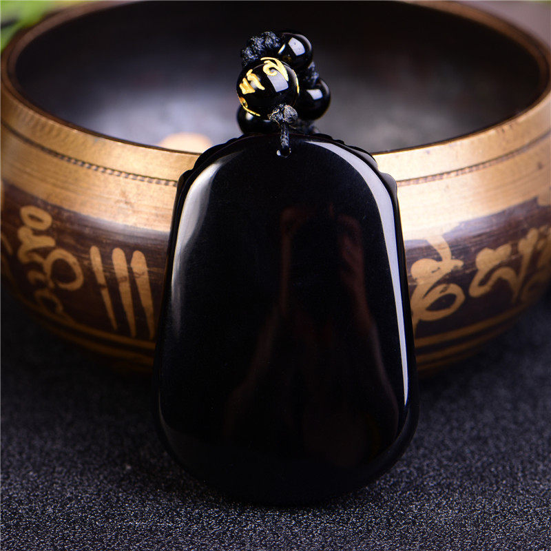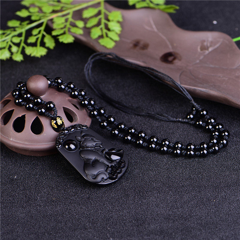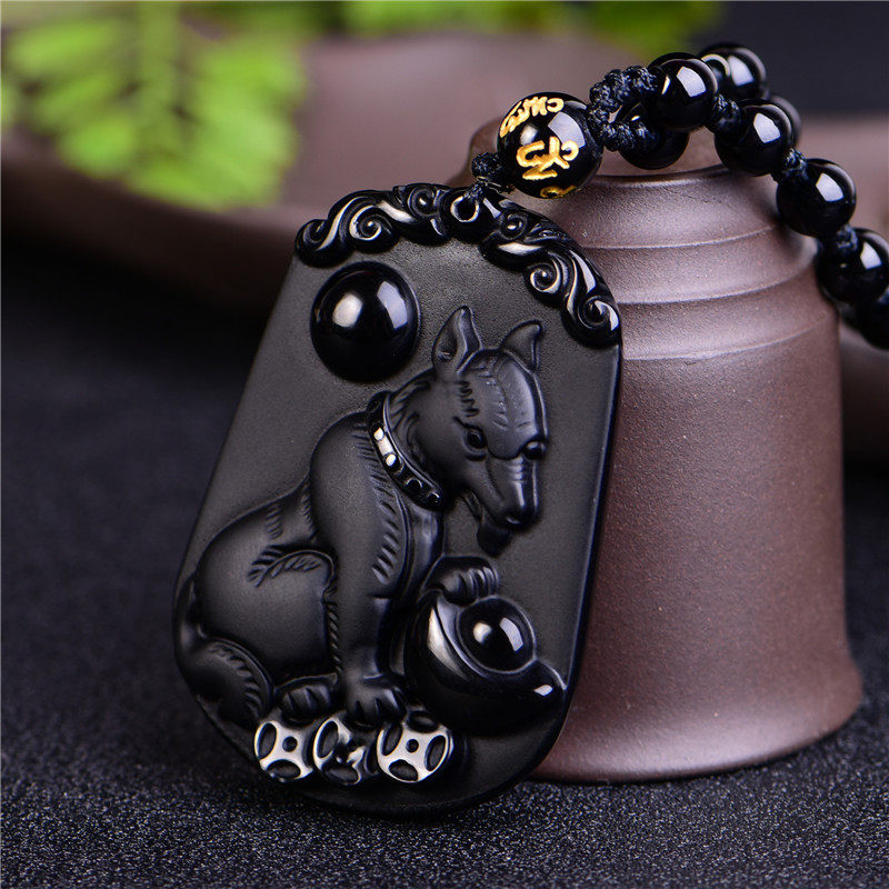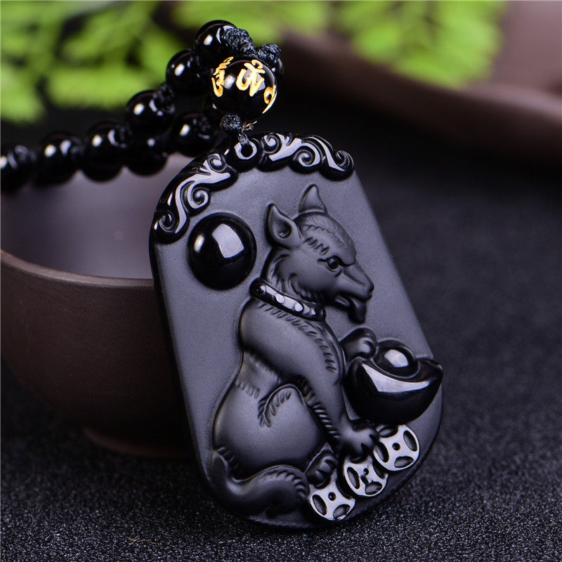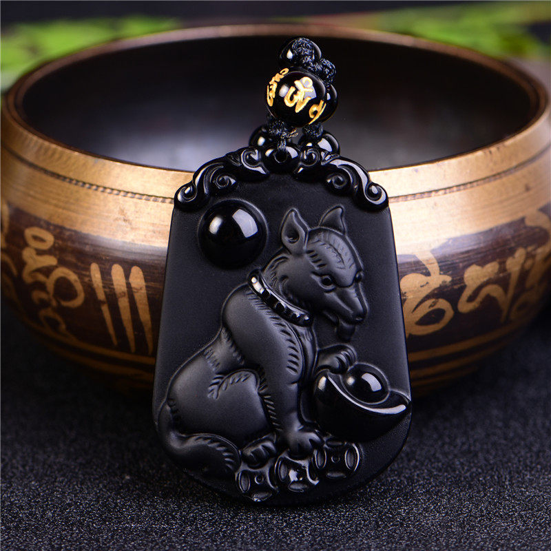 开光天然黑曜石吊坠 生肖属狗挂件 男女款 三合天印 戌元贺岁