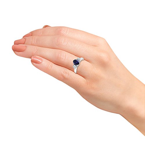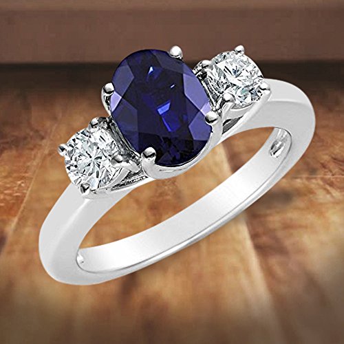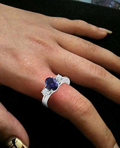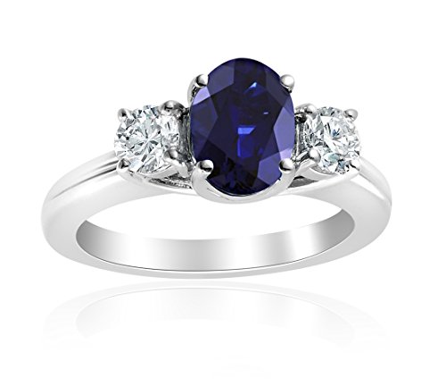 -. Feature : Beautiful Genuine oval shaped Blue Sapphire with Diamond accent stones / Sapphire- 1 stone, 1.85ctw; dimensions, 9mm x 7mm / Diamond- 2 stones, .15ctw; color, G-H; clarity, I1 / Set in 14k White Gold---This Genuine Diamond and Oval Sapphire 3 Stone Ring in 14k White Gold comes with a 100% money back guarantee combined with our outstanding world class customer service---Gift Boxed----MSRP: $1299 / Mixing classic and elegance, this oval-cut genuine sapphire is centered between two diamond side stones and is set in 14k white gold