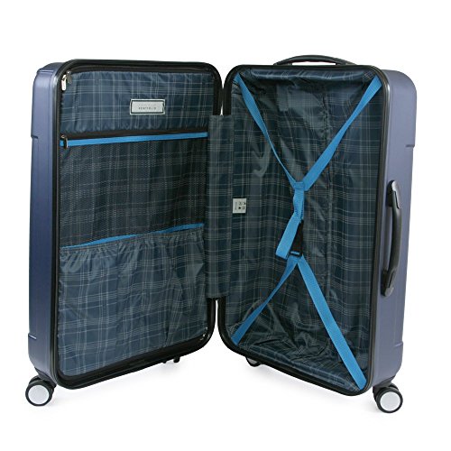 Studio : Perry Ellis Luggage Publisher : Perry Ellis Luggage Binding : Apparel Product Description Zip through the terminal and to your airline seat with this hard side, spinner carry-on from Perry Ellis. With small and large interior compartments and a shoe compartment, you can keep your items neat and organized. Keep your clothing secure with the adjustable buckle tie down. Travel is made easy with an 8-wheel spinner system and top and side handles. 0