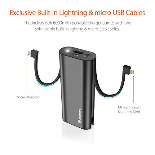 JACKERY BOLT: the new generation of portable charger (Apple MFI certified Lightning & micro USB charging Cable integrated, no more messed cable, through it in purse and go)