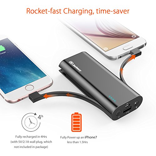 Say Goodbye to Cable Mess Your iPhone and other mobile devices will love you because of your Bolt! Built-in Apple Lightning Cable & Micro-USB Cable Say goodbye to cable mess with a built-in Apple Lighting cable for iPhones, a built-in micro-USB cable for other mobile devices. Now you can charge your iPhone & mobile devices without having to bring extra charging cables. Freedom, convenience, and extra pocket space, yay! Fast Charging, Time-Saving At up to maximum output of 2.4A Jackery Bolt allows you quickly charge your mobile devices anywhere anytime.