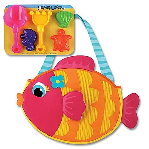 Studio : Stephen Publisher : Stephen Product Description Bring this fun-filled Fish Beach Tote from Stephen Joseph to your next trip to the beach to give your little one a variety of fun seaside accessories. This colorful bag comes bundled with 5 different tools ideal for making the perfect sandcastle. 0