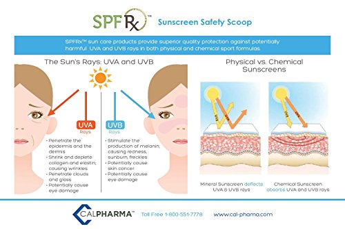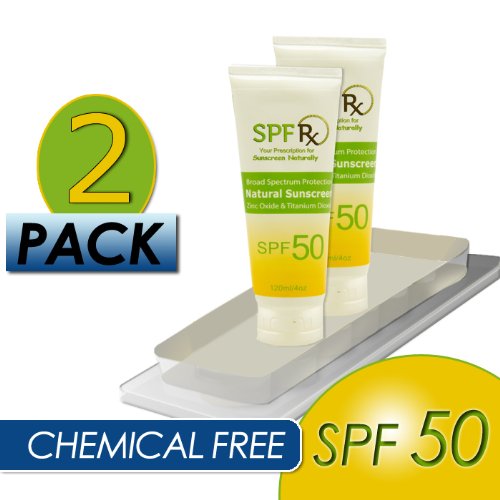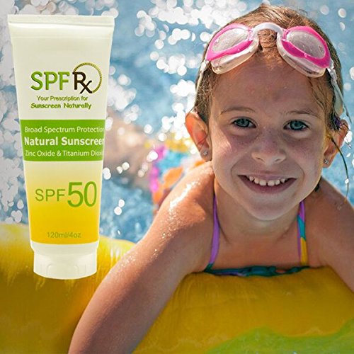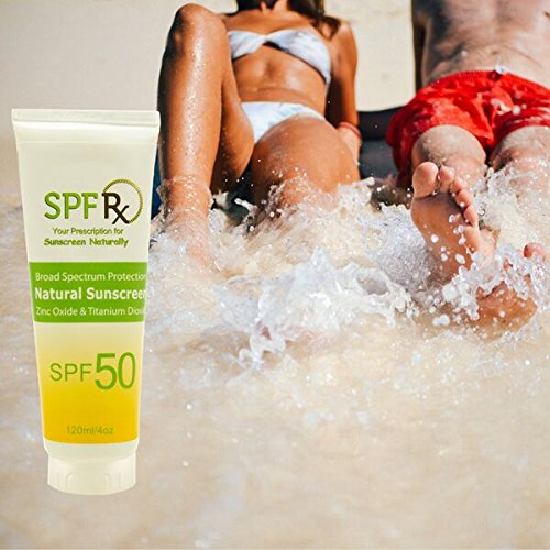 SPF 50 Natural Sunscreen with Zinc Oxide & Titanium Dioxide is a chemical-free sunscreen that provides 80 minutes water resistant for broad spectrum protection. This long-lasting mineral based sunscreen features an SPF 50 broad spectrum protection from damaging UVA and UVB rays. SPF 50 Natural Sunscreen is enriched with clinically proven actives and powerful anti-oxidants that deliver anti-aging benefits. All SPFRX formula variations are: water and perspiration resistant for up to 80 minutes, designed for optimal skin tolerance and are safe and ideal for the entire family and all skin types. Zinc Oxide and Titanium Dioxide sunscreen are the most effective sunscreen ingredients that protect against UVA rays and do not penetrate into your skin.