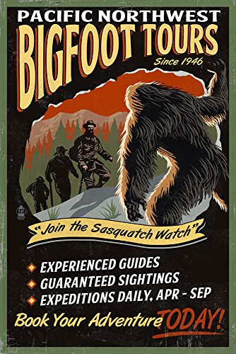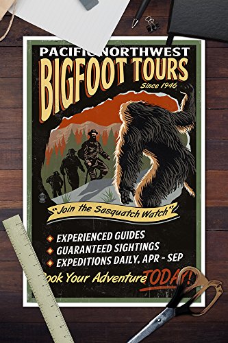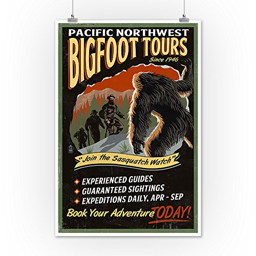 Bigfoot Tours - Vintage Sign (12x18 Art Print, Wall Decor Travel Poster)