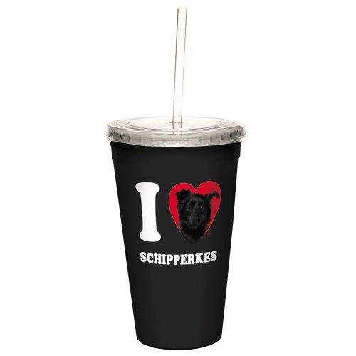 Tree-Free Greetings CC35114 I Heart Schipperkes Artful Traveler Double-Walled Cool Cup with Reusable Straw, 16-Ounce, Black