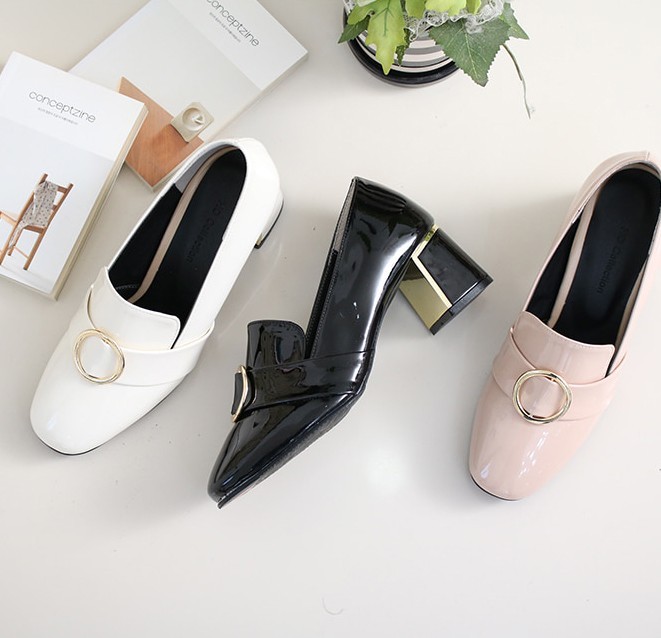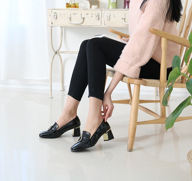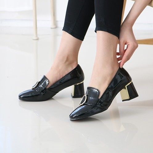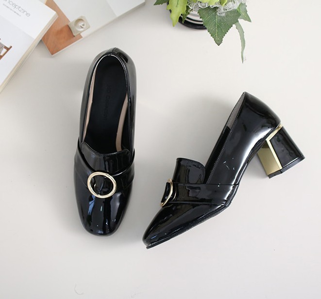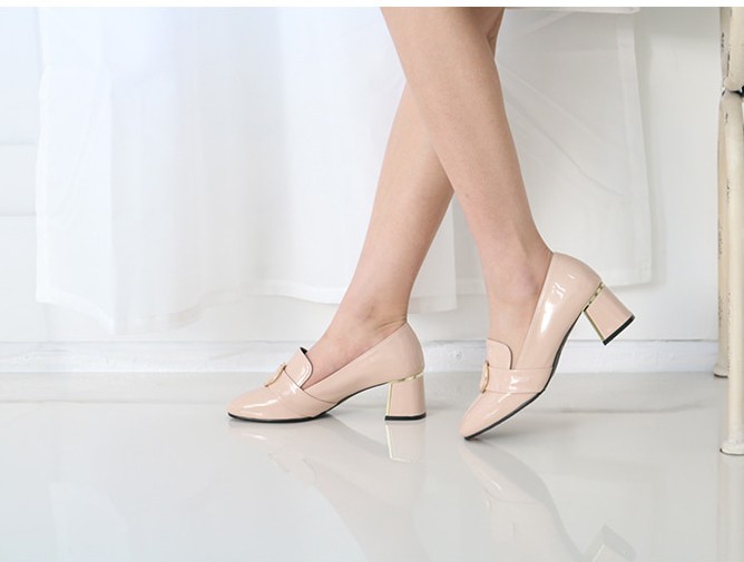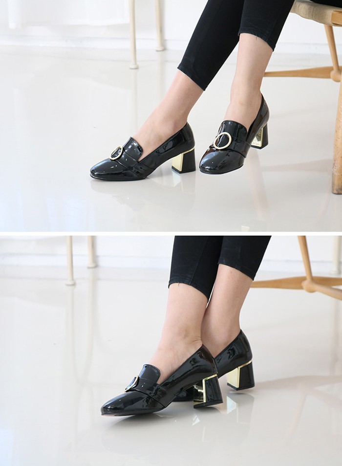商品名:パンプス レディース オペラパンプス チャンキーヒール エナメル調 2018 春 ファッション 靴 婦人靴