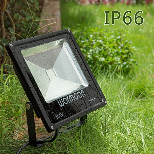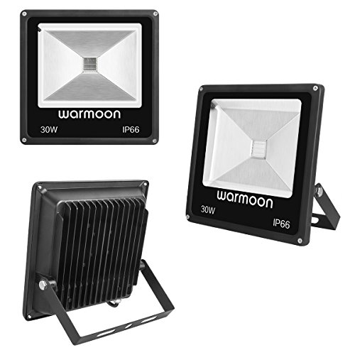 Warmoon RGB LED Flood Lights 30W Outdoor Dimmable 16 Colors Changing Waterproof LED Security Wall Washer Light with Remote Control US 3-Plug for Garages, Warehouses, Backyards, Parking Lots