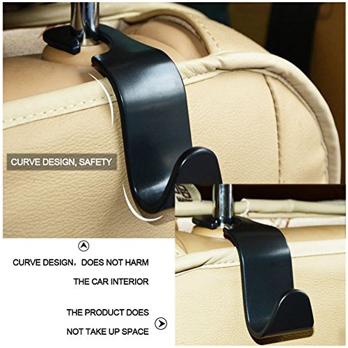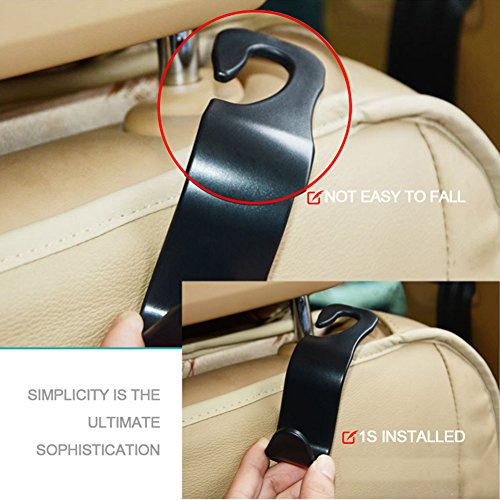 Easy Installation - Special half open design allows you to install these hooks easily, no need to take off the headrests, you can freely set or remove the hooks in secs without extra tools, also the hook can easily swing around the front or back of the seat, V-shaped hook design to make one hook can hange 2 grocery bags or other stuffs, quick and convenient