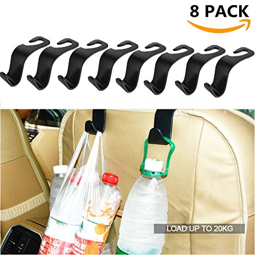 Universal Headrest Hook - Sold by 8 pack, can be used in anywhere you want. Fits Most of Car Seat. Our Hanger fits car headrest rod diameter under 0.53 inch (13.5mm), Organizes back seat clutter and opens up seat, floor and leg room. Swing hook around to either the front or back of the seat to use as desired