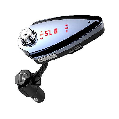 4. FAST CHARGING AND DUAL USB PORTS: The Bluetooth FM Transmitter has two USB ports. It can make fast charging, listening songs, navigation synchronization.