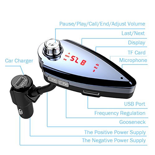 360 DEGREE ROTATION WIDE COMPATIBILITY CAR BLUETOOTH FM TRANSMITTERFUNCTION: 1. SUPPORT HANDS-FREE CALLING: Built-in microphone, simply press the one button to answer/reject/redial a call, convenience and safe to use while driving.