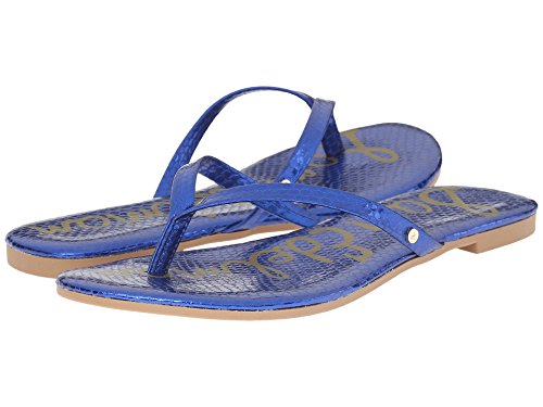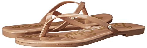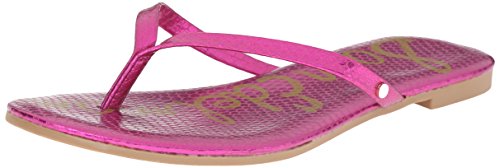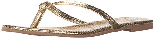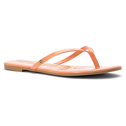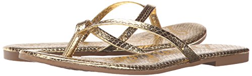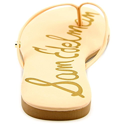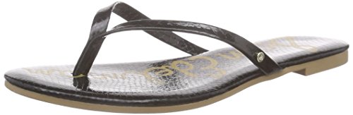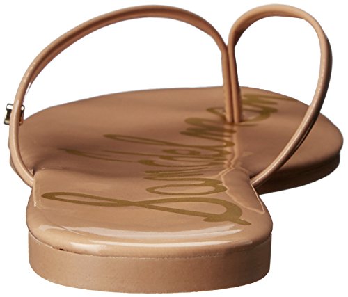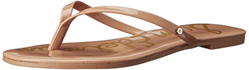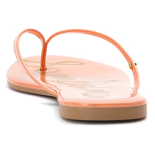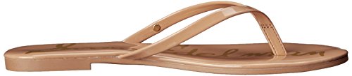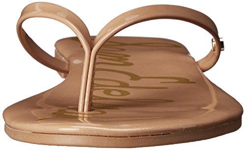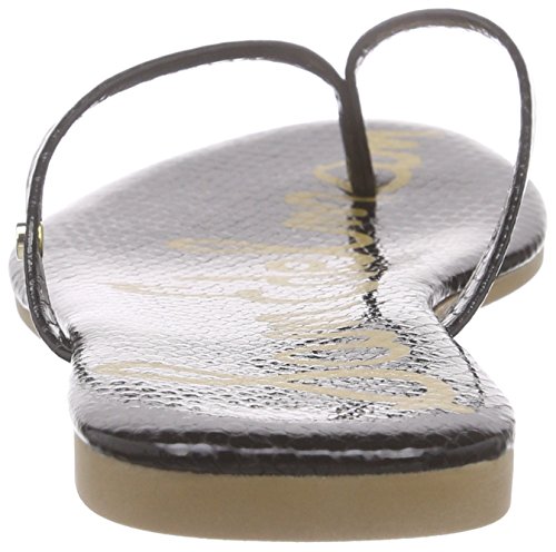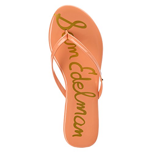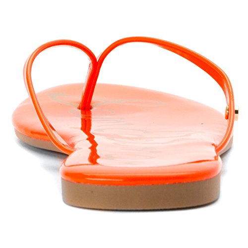 Flip-flop featuring slender thong strap with small round logo stud at side