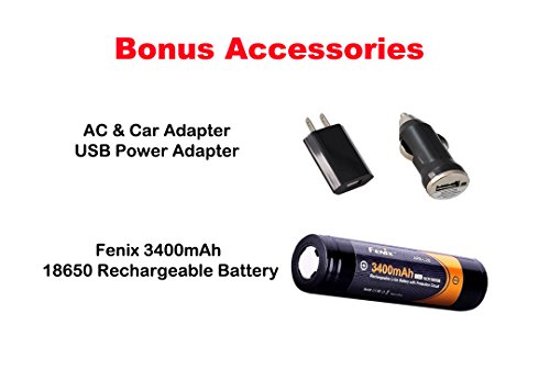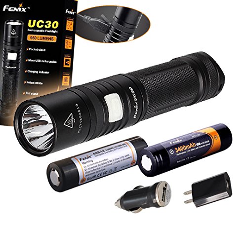 -. Title : 3400mAH 18650, Fenix UC30 960 Lumens Cree XM-L2 LED Rechargeable LED Flashlight w/ 2600mAh 18650, Holster, Built-in USB Charger, and Bonus Fenix 3400mAh Rechargeable Battery, Lumen Tactical AC CAR Power Adapter