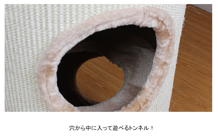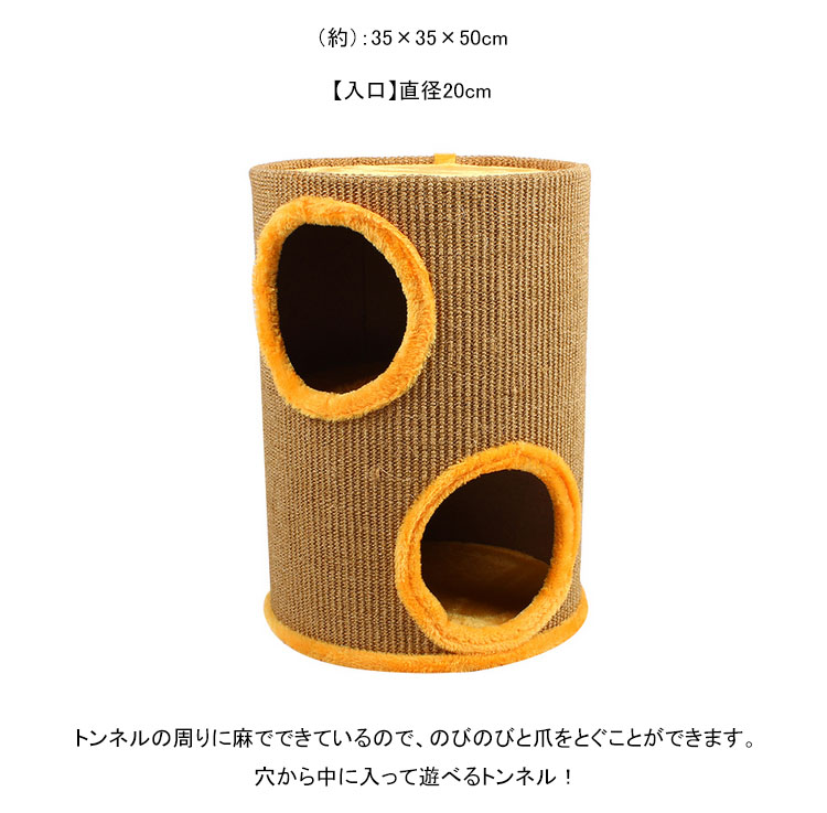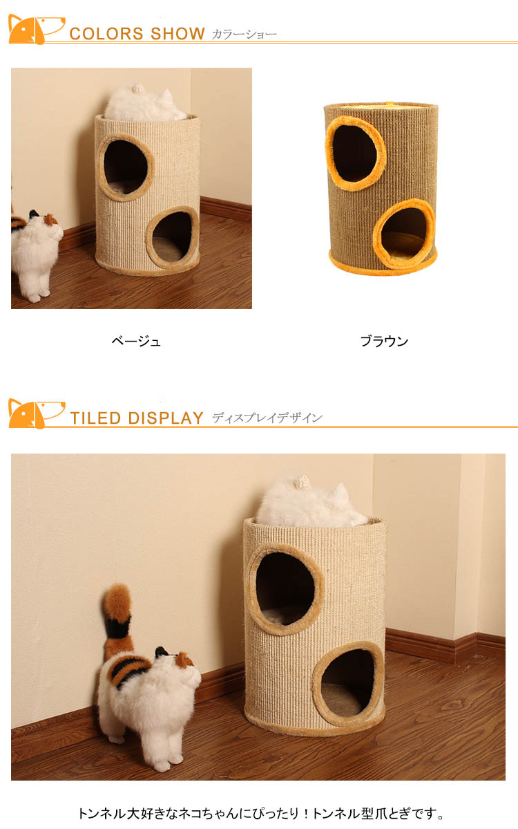 | トンネル大好きなネコちゃんにぴったり!トンネル型爪とぎです。トンネルの周りに麻でできているので、のびのびと爪をとぐことができます。穴から中に入って遊べるトンネル! | |