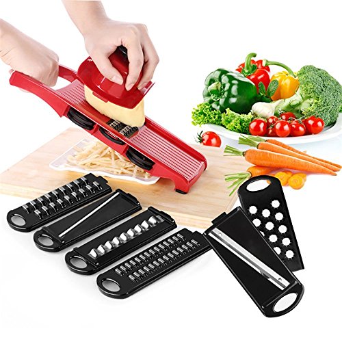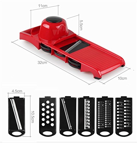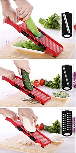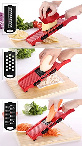 Momugs Adjustable Mandoline Food Slicer - 6 Blades - Vegetable Cutter, Peeler, Slicer, Grater and Slicer with Handguards - Red