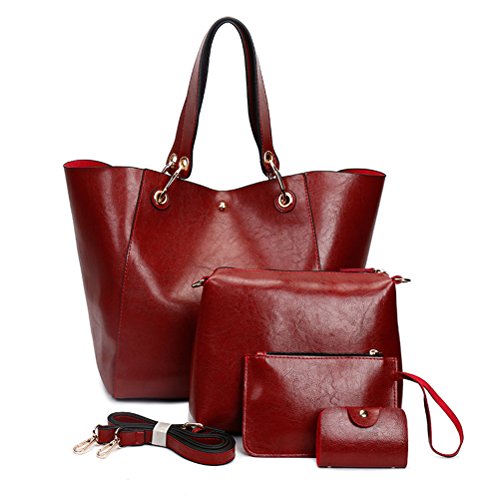 STRUCTURE: This gorgeous elegant bags comes with 4pcs sets. Big handbag, Shoulder bag, wallet, card bag. There is a zipper pocket in the big handbag, can be used to put some small items,such as coins,keys,lipstick etc.
