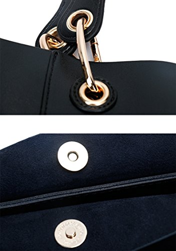 CLOSURE: The magnetic buckle with strong suction force are used to well close the big handbag. Shoulder bag closed by top zipper.