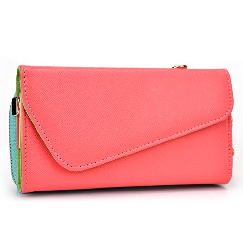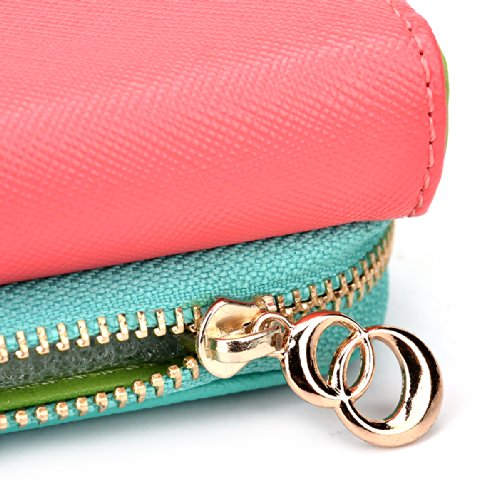 Kroo Clutch Wallet with Wristlet and Crossbody Strap for Smartphones up to 6.3 Inch - Carrying Case - Frustration-Free Packaging - Pink and Teal