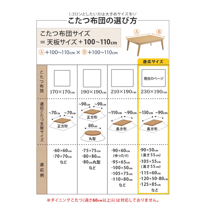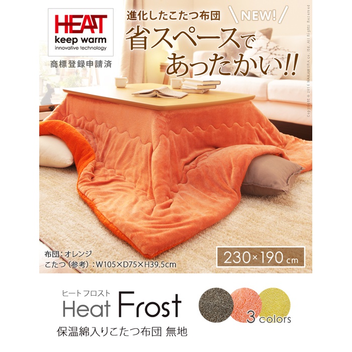 Rakuten 【무료 우송】난로 이불 직사각형 중면-안솜 『보온면 들어감 난로 이불 무지 타입 〔heat 프로스트〕 230x190cm』 방오가공 난로용 이불 발수 씻을 수 있 심플 따스한