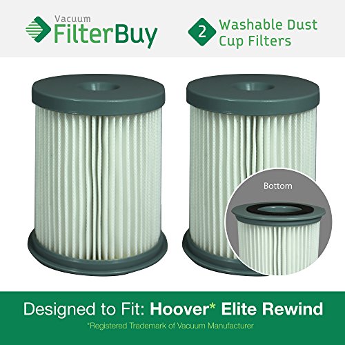 2 - Hoover Elite Rewind Dust Cup Filters, Part # 59157055. Designed by FilterBuy to fit ALL Hoover Elite Rewind Upright Bagless Vacuum Cleaners