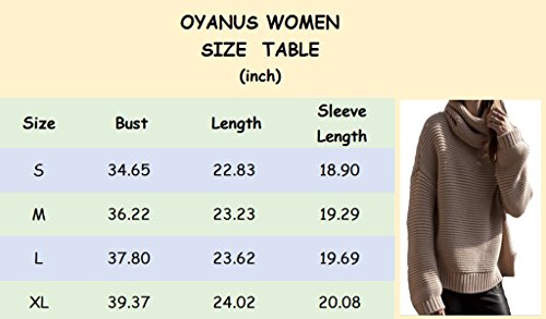 -. Feature : Fabric: Cotton / Imported, designed by USA / Machine Washable (Recommended Hand Wash), Do Not Bleach, Flat Dry / Oyanus Women's Loose Cowl Neck Chunky Cable Knit Pullover Top Sweater Jumper High quality soft fabric, comfy to dress up. Perfect sweater jumper for any occasions, such as party, club, outing ect. / Features: oversized, cowl neck, turtle neck, long sleeve, loose fit, chunky knit sweater, pullover sweater, cable knit, sweater jumper, women tops. / PLEASE CHOOSE YOUR SIZE BASED ON BUST MEASUREMENT / Bust: (S) 34.65 inches (M) 36.22 inches (L):37.80 inches (XL): 39.37 inches