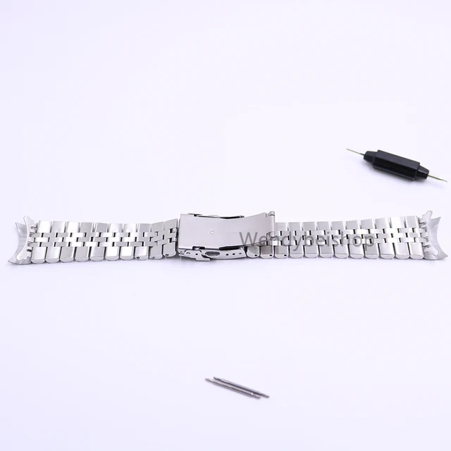 | [해외]22 미리메터 중공 곡선 엔드 고체 나사 링크 스테인레스 스틸 실버 시계 밴드 스트랩 이전 스타일 축제 팔찌 더블 푸시 걸쇠 |