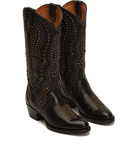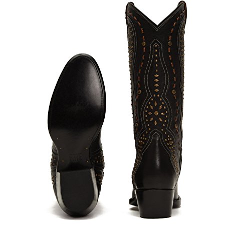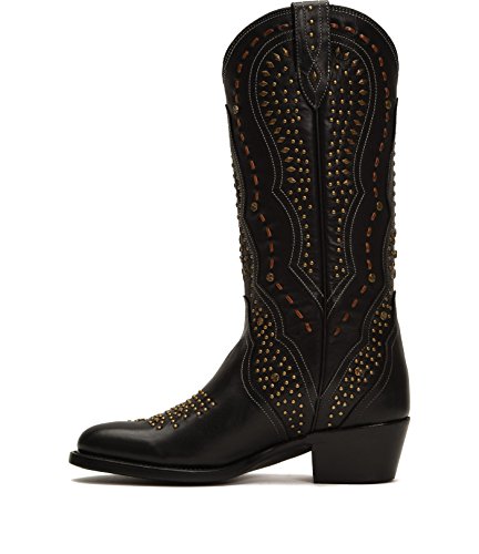 Binding : Apparel Product Description Western glam at its finest. Handcrafted from gorgeous smooth vegetable tanned calf leather, this classic pull-on boot with round toe and tall mid shaft elegantly displays hand-studded detailing and contrast stitching. 0